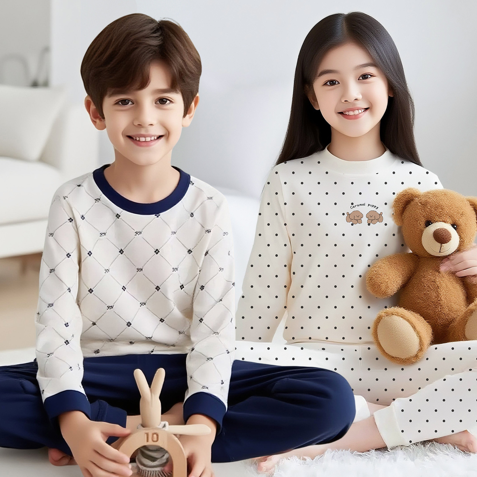 Malt Can Autumn Kidsren's Autumn Clothes and Long Pants Set Category a 100% Cotton Pure Cotton Boys and Girls Home Clothes Pajamas