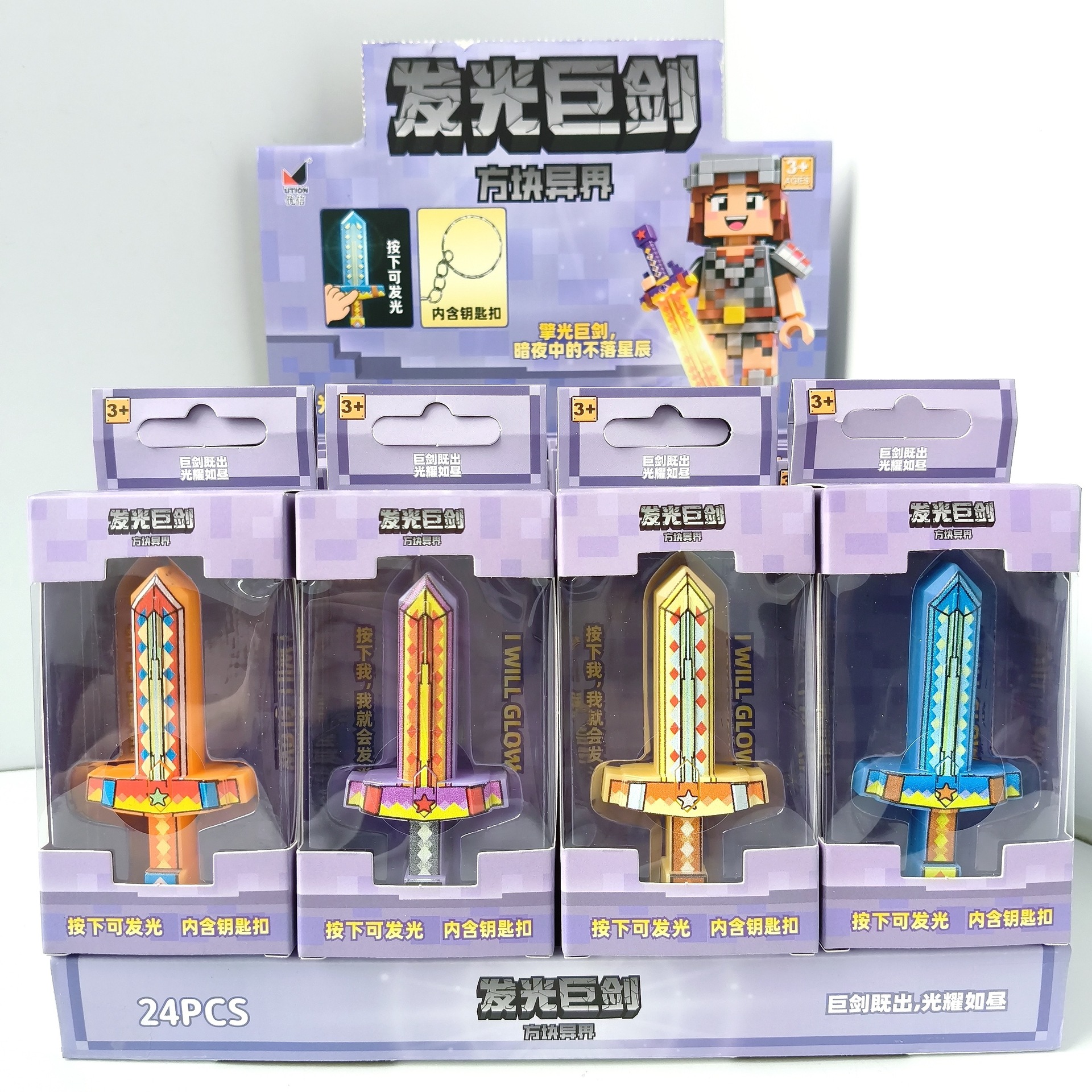 New Square World Glowing Giant Sword Diamond Sword Spark Sword Keychain Pendant Boy Toy Birthday Gift