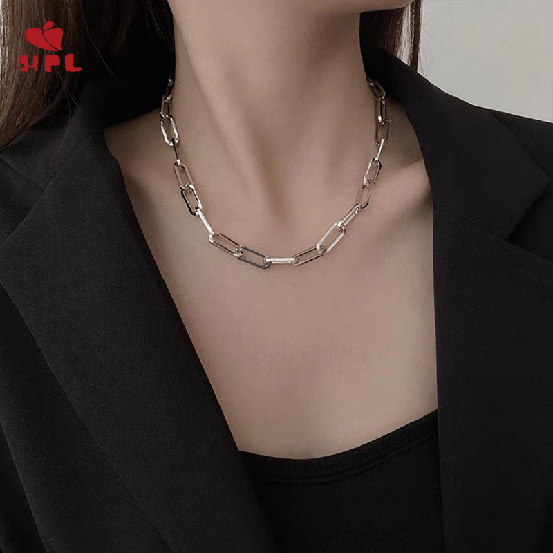S925 sterling silver thick chain DIY accessories necklace women's ins hip hop clavicle chain men's trendy chain accessories sweater chain