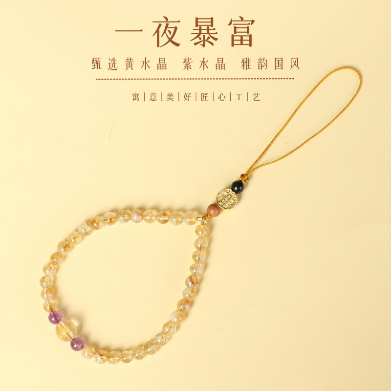 Ji Rope Ji Yellow Tower Crystal Beaded Jewelry Men's Amethyst Beads Accessories Pendant Women's Key Pendant Crystal Mobile Phone Chain