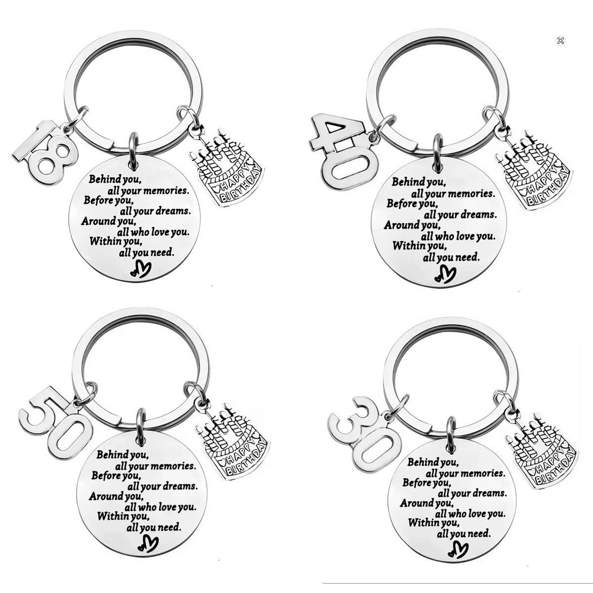 Cross-Border Birthday Stainless Steel Keychain for Boys and Girls Aged 13-18-30 Years Old Birthday Gifts