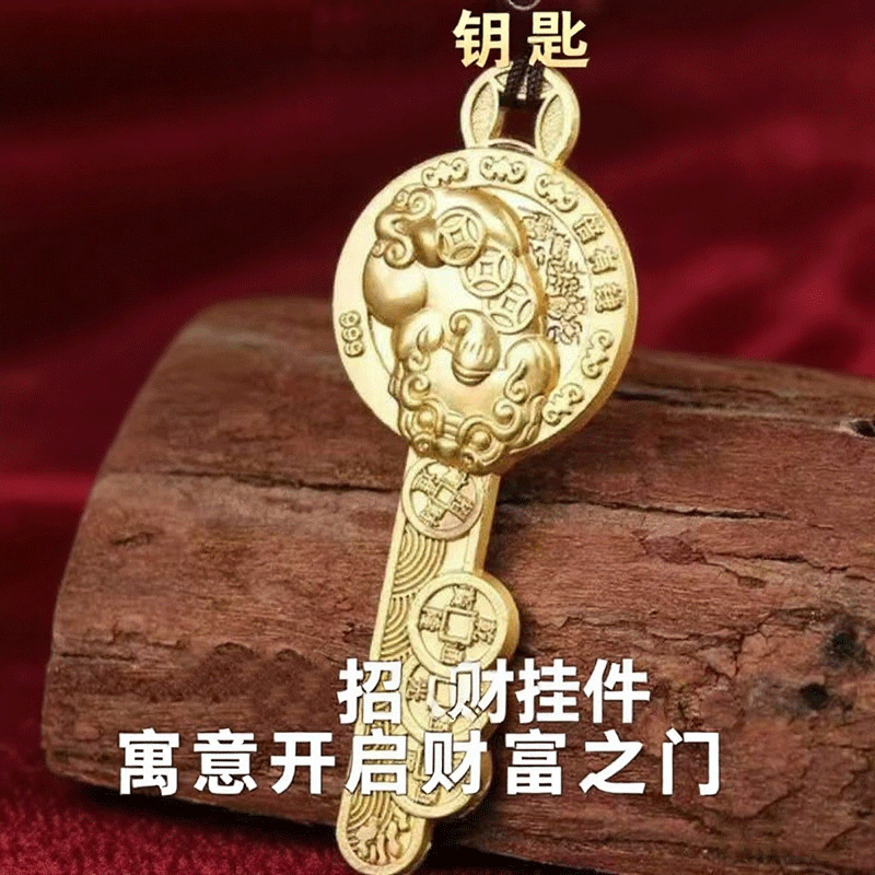 Factory Direct Sale Exquisite Accessories Wholesale New Alloy Pixiu Vault Opening Gold Key Men's and Women's Keychain