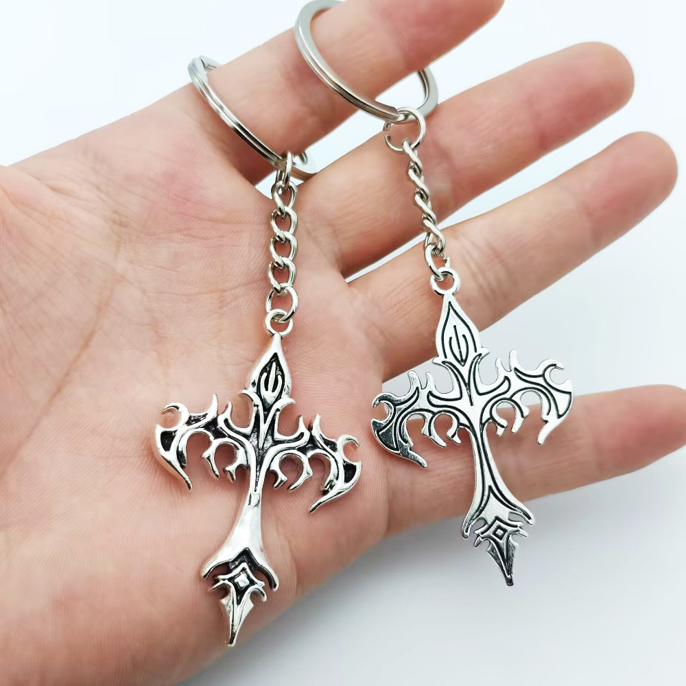 Hot Selling Foreign Trade Flame Retro Cross Keychain Men's Pendant Accessories Zinc Alloy Jewelry Accessories