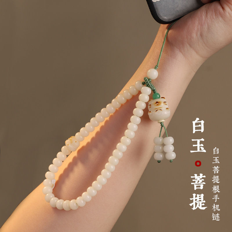 White Jade Bodhi Lotus Mobile Phone Chain Lanyard Wind Short Wrist Women's Antique Pendant Anti-loss Hanging Ornaments Men's Jewelry Accessories