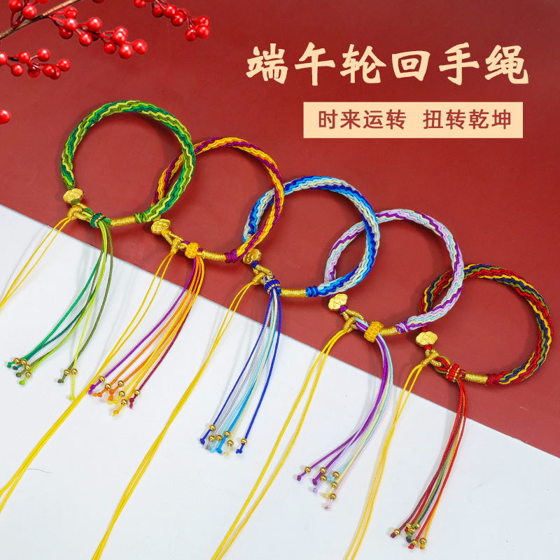 Hand-Woven Colorful Rope Reincarnation Bracelet for Women DIY Wearable Jewelry Accessories Ethnic Style Auspicious Cloud Bracelet for Men Wholesale