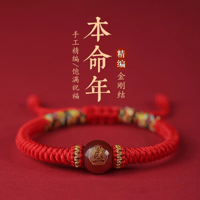 Benmingnian Red Rope Female Shajin Ruyi Ping An Lock Hand Rope Male Niche Transfer Bead Couple Bracelet Gift