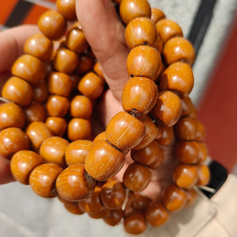 Yuhua Cream Yellow Bodhi Root Bracelet Men's and Women's Bracelet Buddha Bead Wen Play Bodhi Abacus Bead Double Circle Wen Play Lotus Canopy