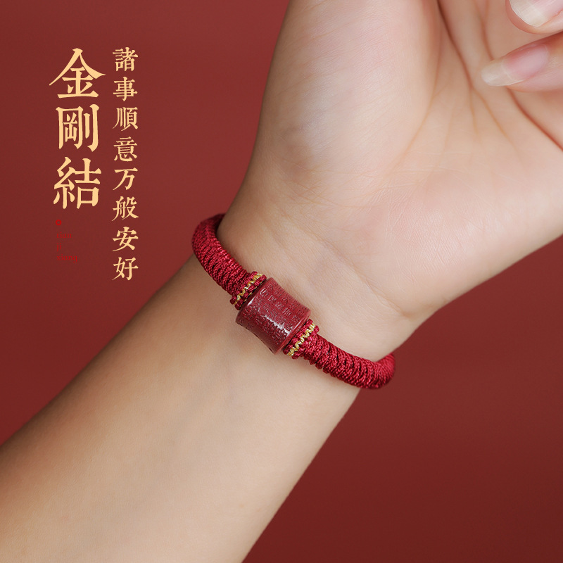 Heart Sutra Cinnabar Red Rope Bracelet Braided Rope 2026 Year of the Horse Zodiac Year Red Bracelet Vajra Knot Bracelet for Women
