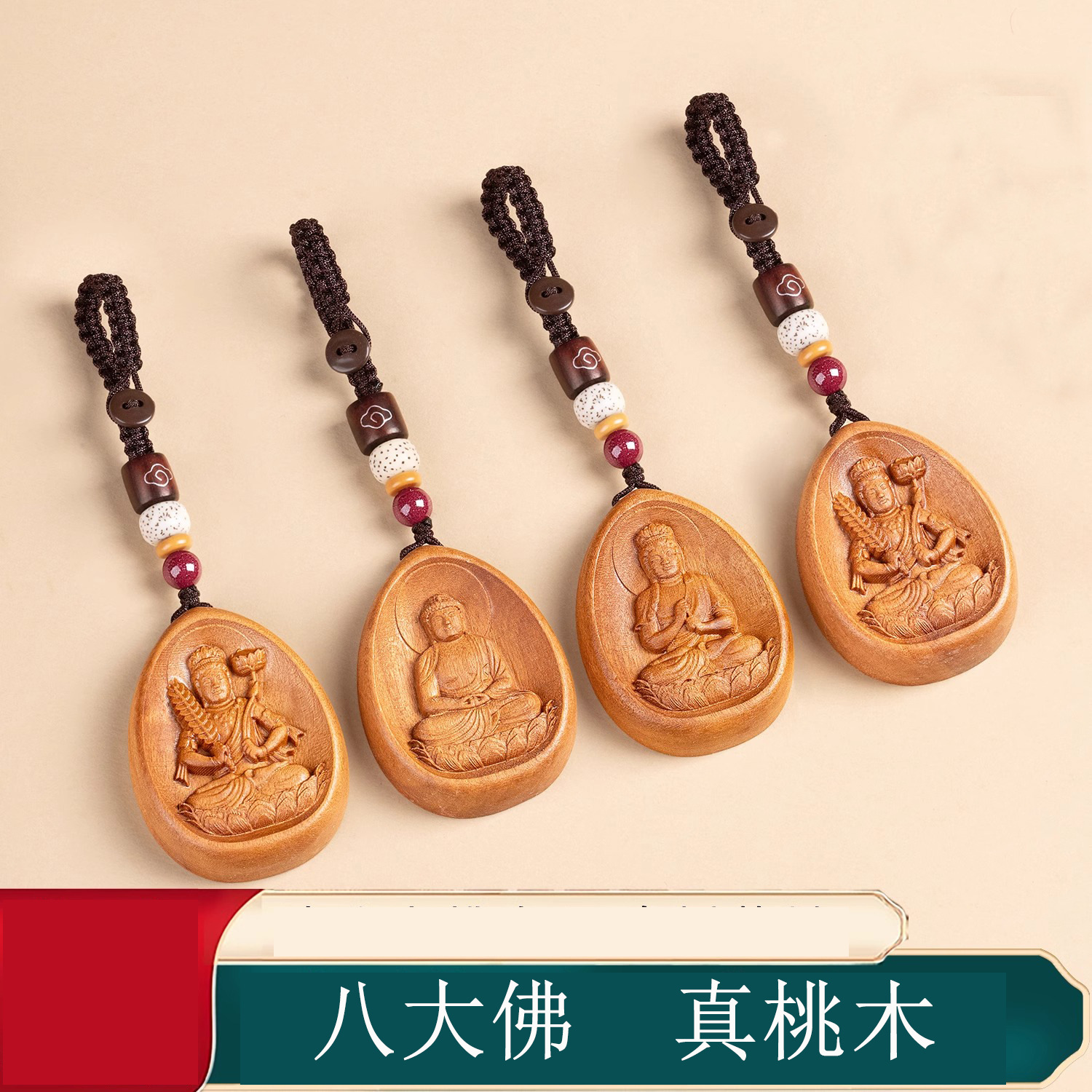 Natural Peach Buming Buddha Creative Car Keychain Pendant Men's and Women's Bag Pendant 12 Zodiac Guardian