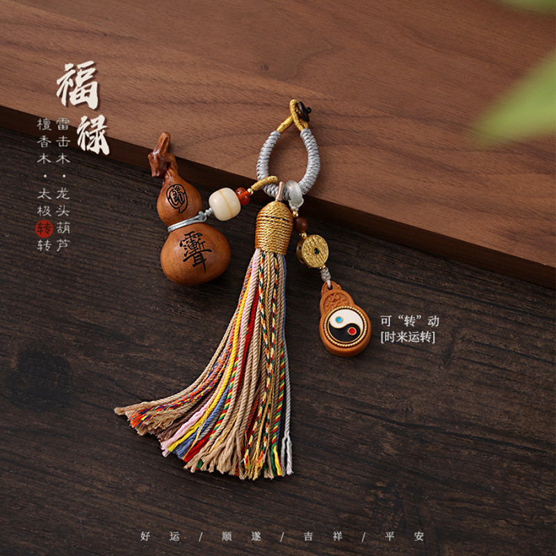 Factory Direct Sale Lightning-Struck Wood Gourd Tai Chi Spinning Xizang Tassel Keychain Bag Pendant Cultural Toy Accessory for Men