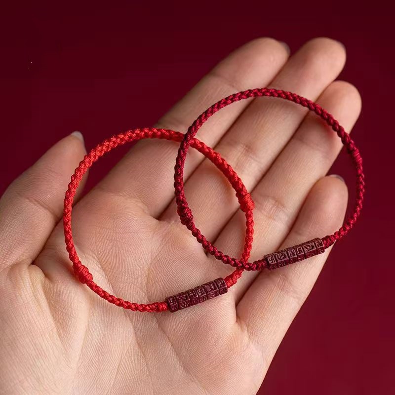 2025 New Original Stone Cinnabar Six Character True Words Red Rope Bracelet Anklet for Men and Women This Year of Life Transfer Beads Woven Hand Rope