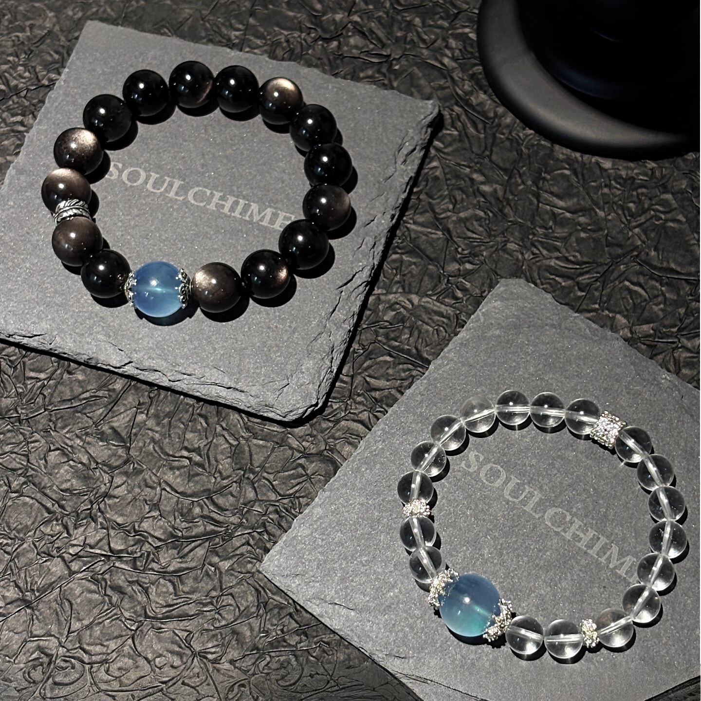 Natural Aquamarine White Crystal Silver Obsidian S925 Bracelet Commemorative Couple High-End Bracelet Birthday Gift