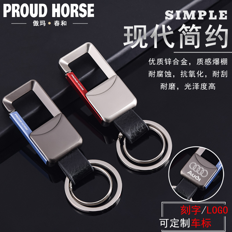 AOMA men's business keychain genuine leather key ring creative car key pendant key chain lettering gift