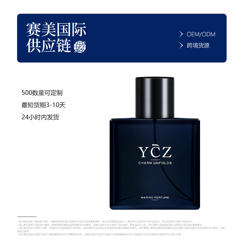 Cross-Border Yc Charm Unfolds Blue Men's Perfume 50ml Long-Lasting Light Fragrance Cologne Woody Fragrance
