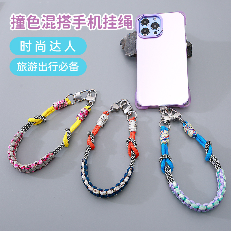 Fashionista Color Mashup Mobile Phone Lanyard Short Wrist Band Trendy Men's and Women's Sports Travel Anti-Lost Mobile Phone Chain