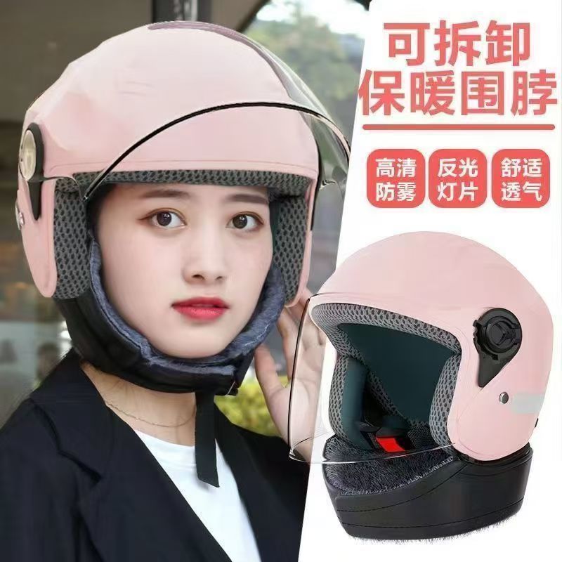 Electric Vehicle Helmet Autumn and Winter Men's and Women's Cold-Proof and Warm Safety Helmet Cute Popular Scarf Detachable and Lightweight