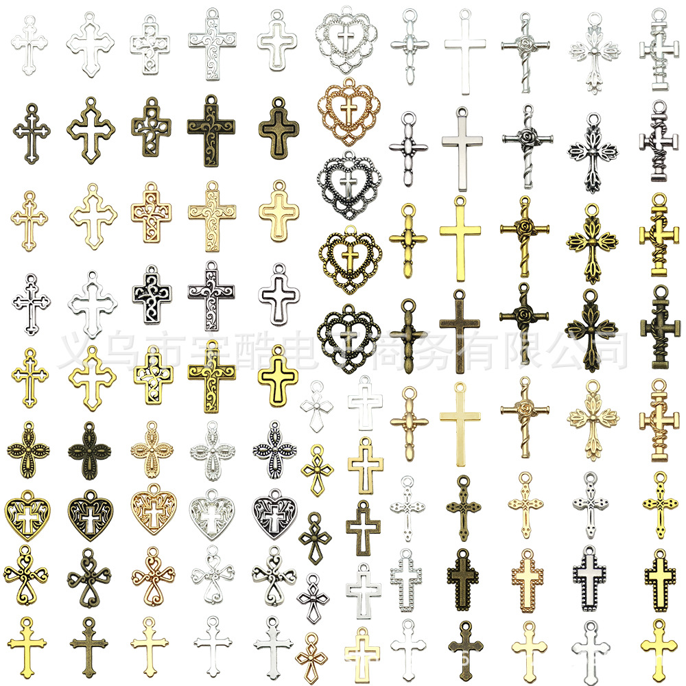 Cross-border Hot-selling Mixed 100 Vintage Love Cross Alloy Pendant Five-color DIY Bracelet Beaded Jewelry Accessories