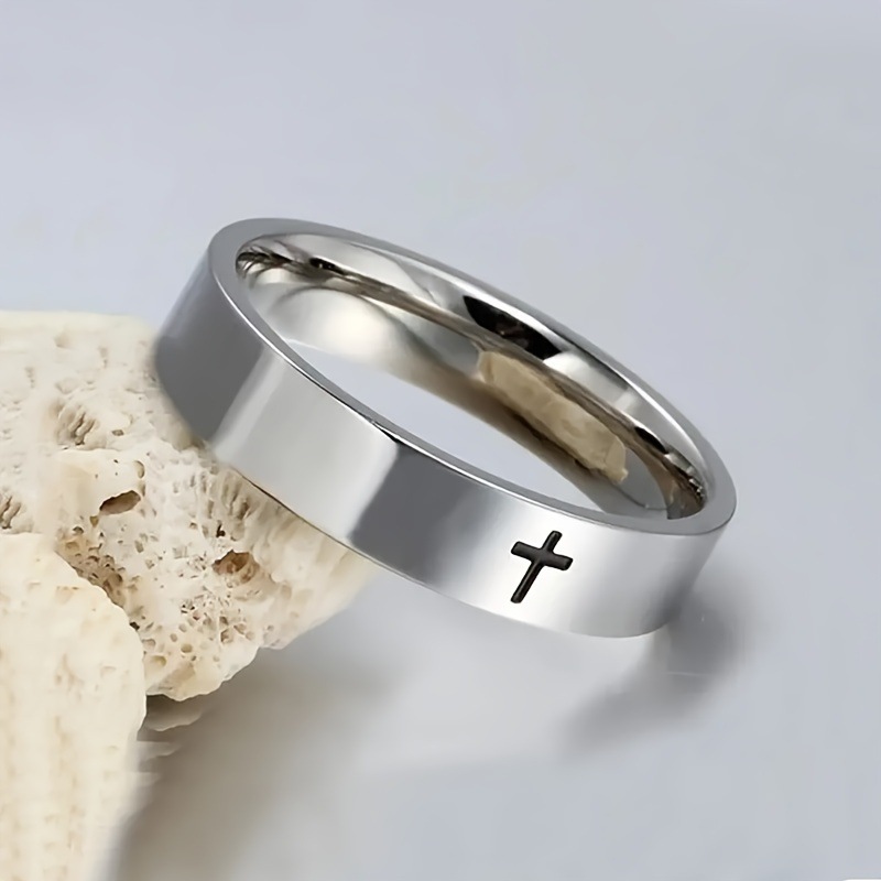 Cross-Border Jewelry Wholesale Titanium Steel Ring Ins Unisex Stainless Steel Cross Ring Simple Personalized Gift