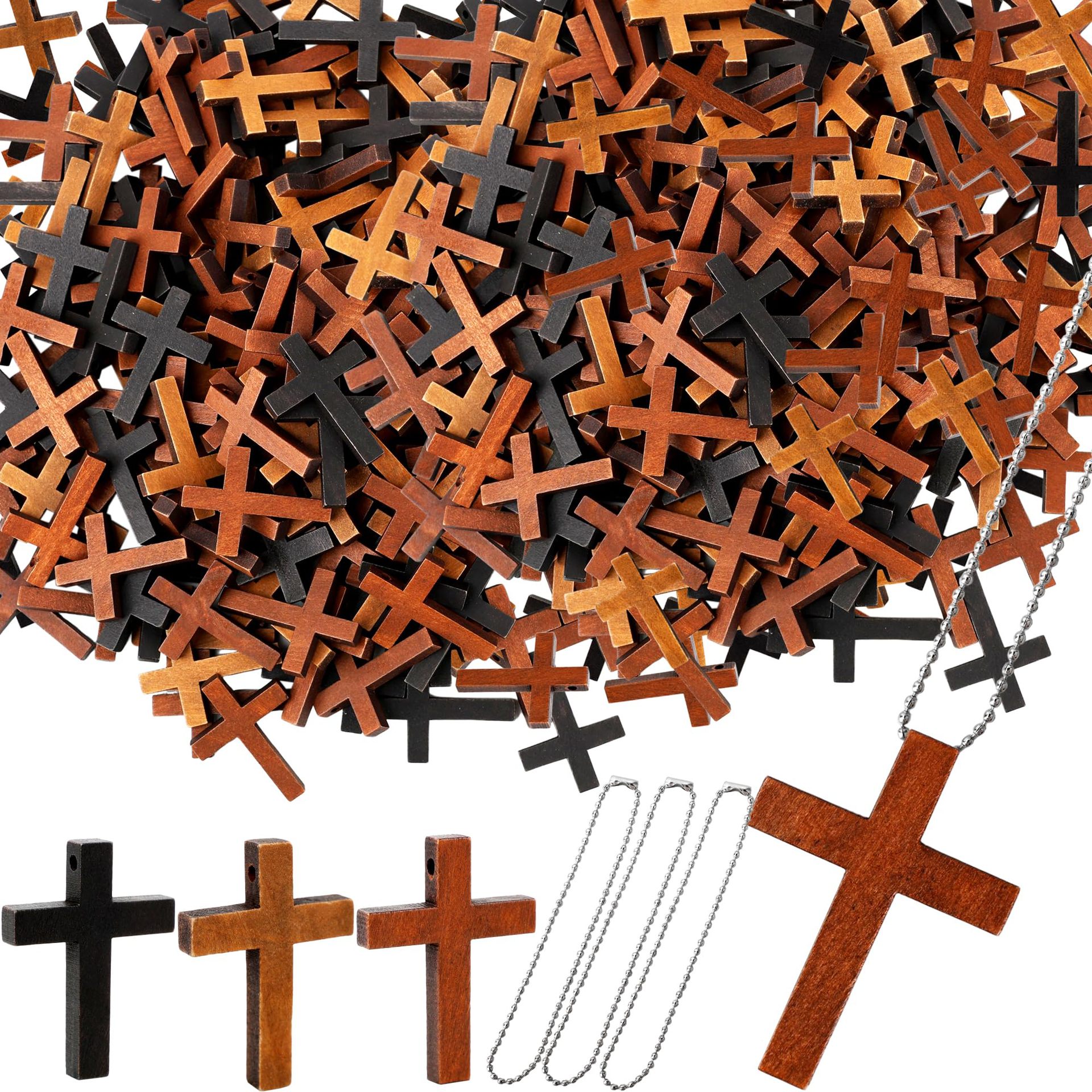 Cross-Border Hot Selling Wooden Cross Key Chain Mini Cross Pendant Christian Black Cross Key Chain