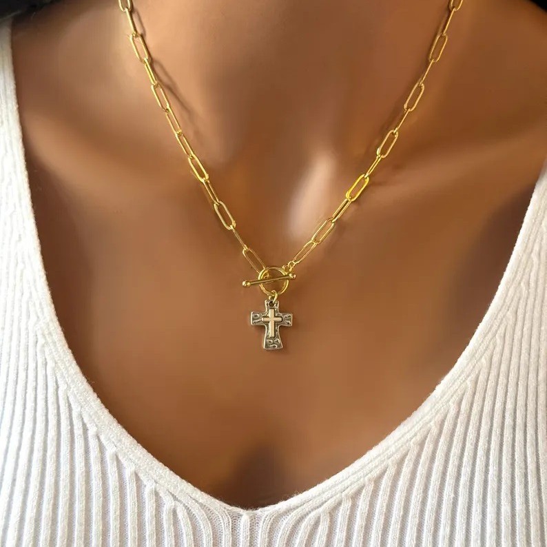 European and American Cross-border Pap Chain Hammer Cross Necklace Women's Thick Personalized Hanging Christian Hip-hop Pendant