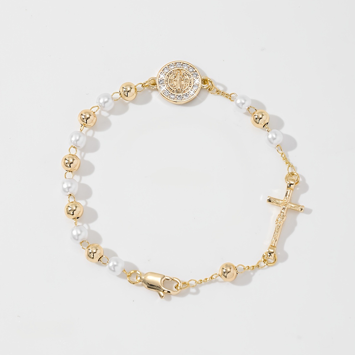 Cross-Border Cross Micro-Encrusted Bead Chain, Non-Fading Diamond-Encrusted Women's Color-Preserving Copper Color Bracelet, Light Luxury and High-End Gift