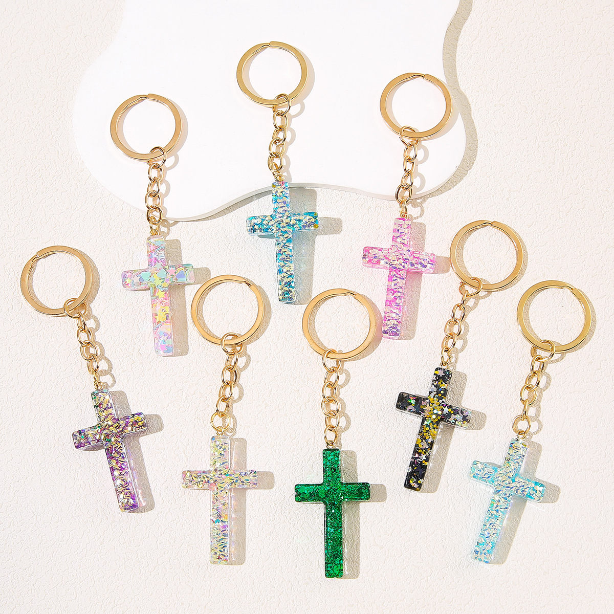 New Cross-Border Popular Sequin Cross Keychain Christian Resin Pendant Keychain Women's Bag Pendant