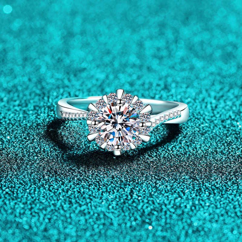 Xindeyi S925 Sterling Silver Moissanite Ring Newbie Sunflower Design Classic and Elegant Holiday Gift