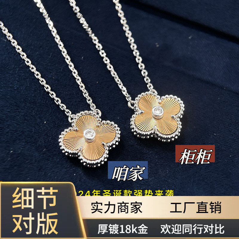 2024 Christmas Limited Edition Four-Leaf Clover Necklace Plated with 18K Rose Gold and White Gold Two-Color Laser Diamond Clavicle Chain