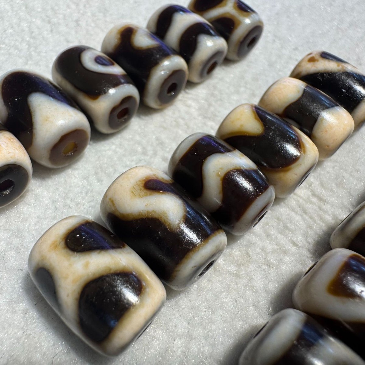 Xizang-Style Tiger Tooth Three-Eyed Agate Dzi Beads, Patina DIY Accessories Wholesale 11*16mm Bracelet Jewelry