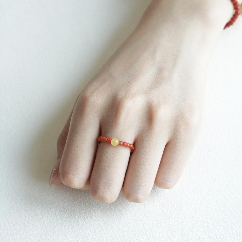 Natural Liangshan Southern Red Agate Beeswax Ring Female Zodiac Year Red Jewelry Female Elegant Gift