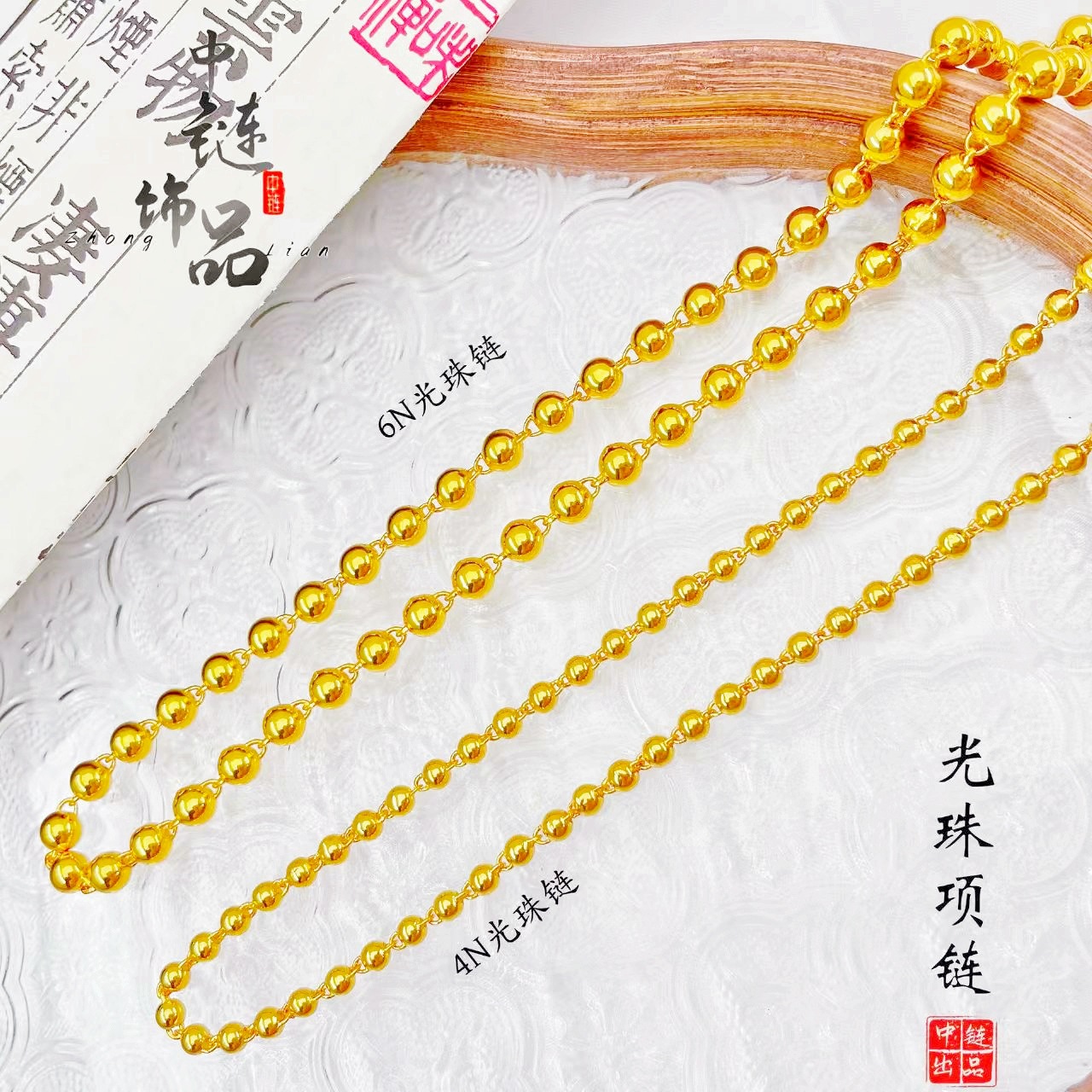 Manufacturer Wholesale Vietnamese Sand Gold Solid Ball Necklace Brass Gold-Plated Solid Glossy Bead Necklace Jewelry Gift