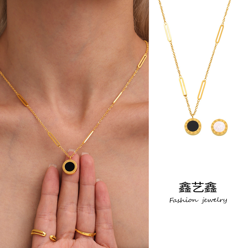 Xinyixin European and American English Letter love Roman Numerals Black and White Shell Necklace Bracelet Stainless Steel 18k Gold Plated