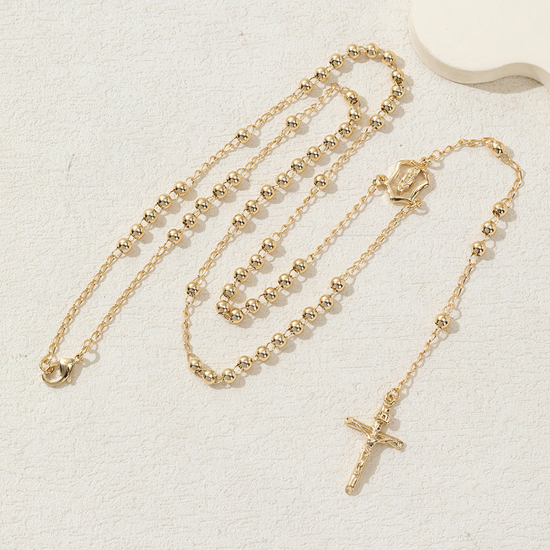 Cross-Border Xiyin Virgin Mary Cross Necklace 4mm Ball Chain Full Copper Color-Preserving Handmade High Quality