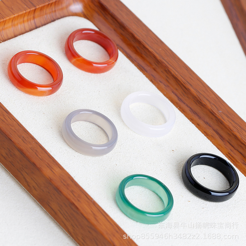 Natural red chalcedony ring tail ring black agate jade green white female ring this life year red ring gift