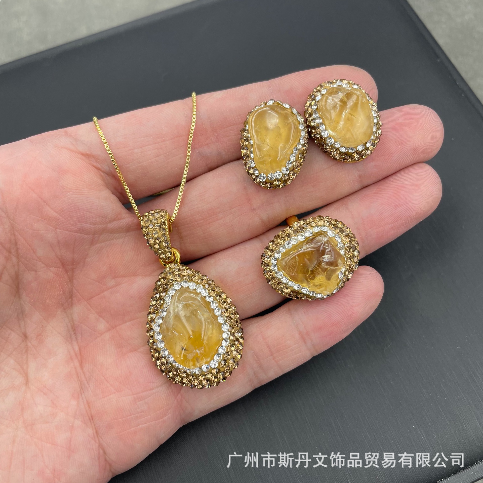 Natural raw ore citrine mid-ancient necklace suit French niche jewelry sweater chain personalized color protection three-piece set
