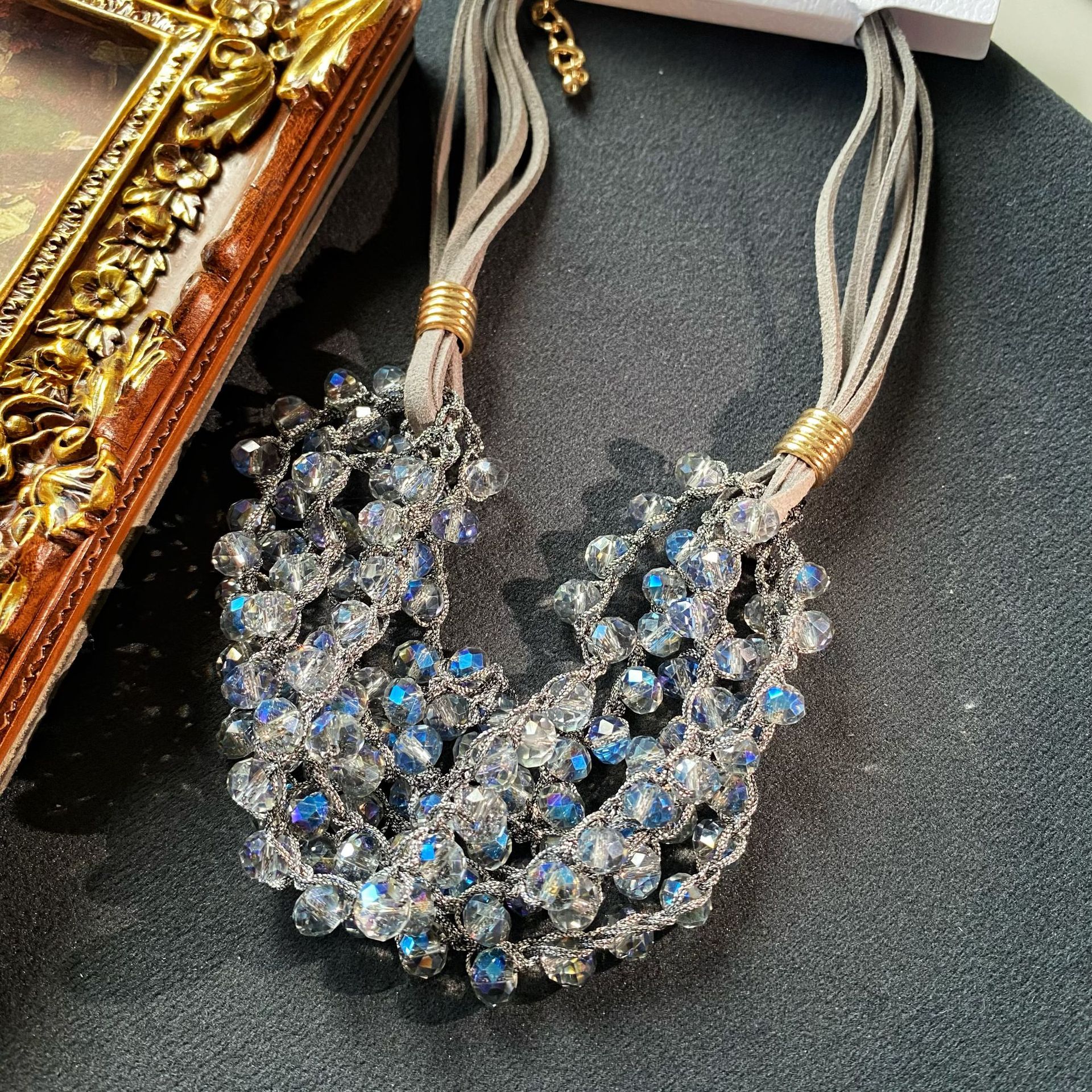Middle Ancient Cross-border European and American Retro Jewelry Women's Vintage Color Treasure Beaded Multi-layer Resin Glass Stone Necklace