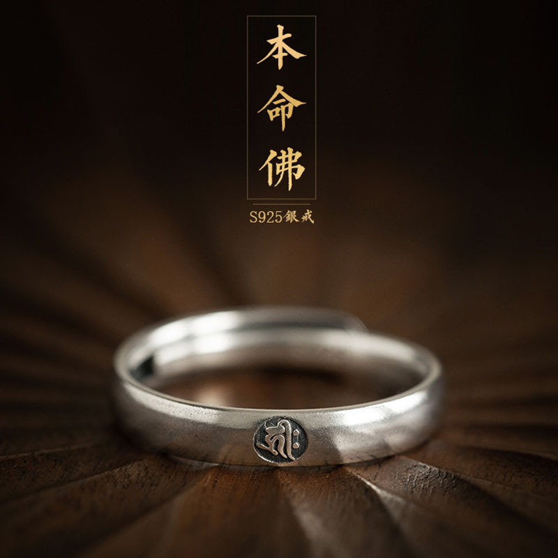 S925 Sterling Silver Eight Zodiac Year Ring for Men and Women, Couple Style Ring, Simple Personalized Guardian Safety Ring