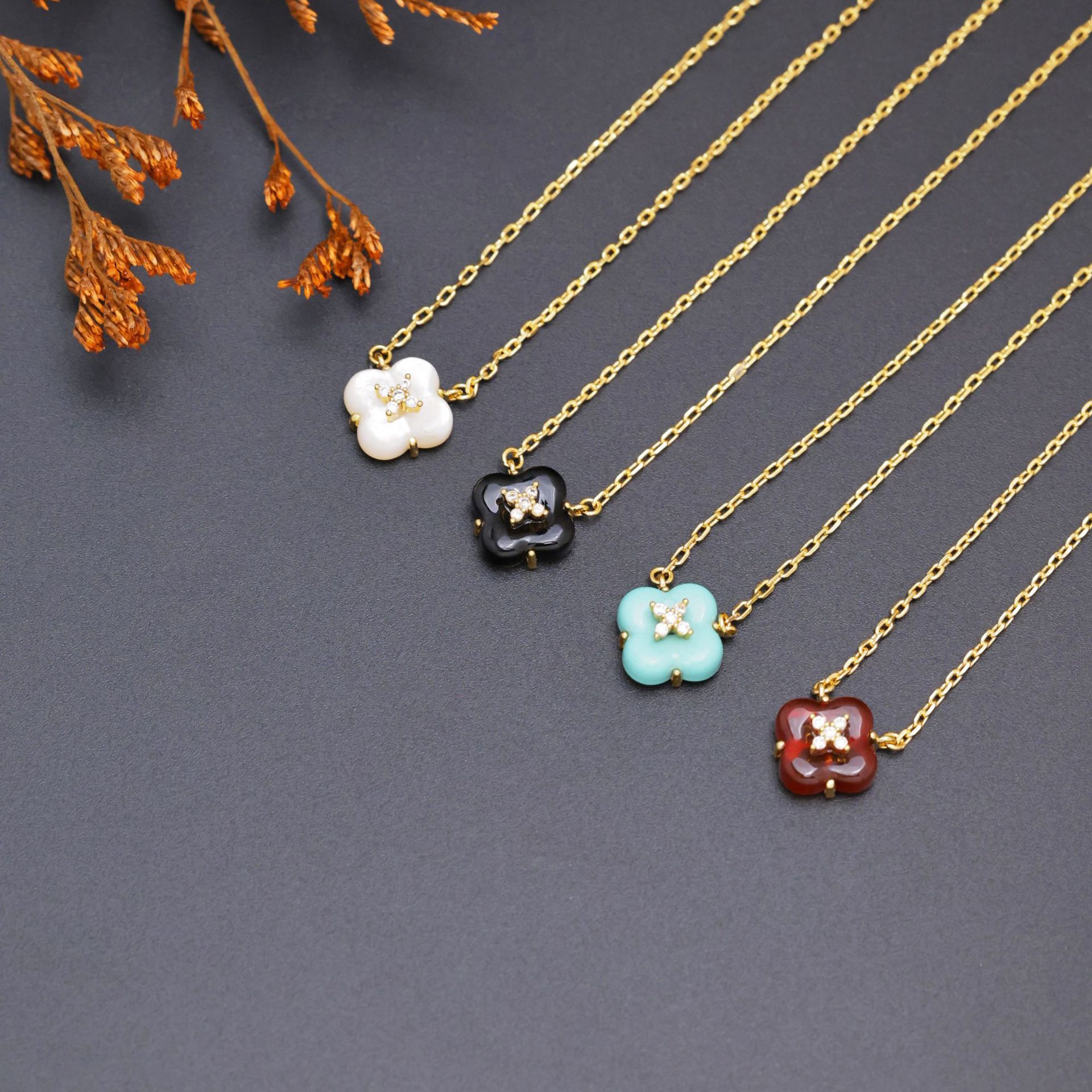 Four-Leaf Clover Wishing Pool Necklace Natural Agate Copper White Mother-Of-Pearl Pendant Summer Jewelry Women's High-End Jewelry Beads