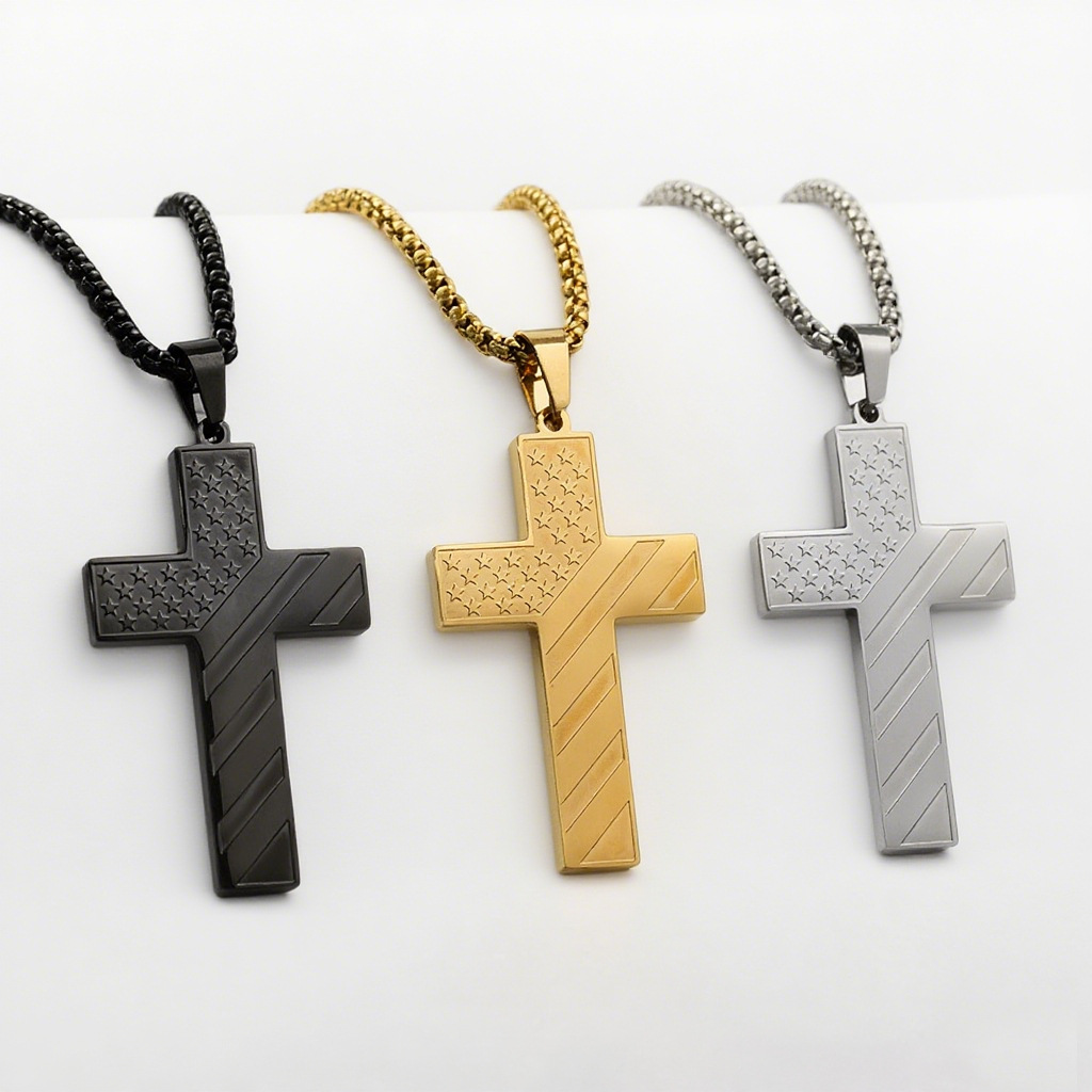 Cross Necklace Cross-Border Hot-Selling Cross Necklace Men's and Women's Stainless Steel Christian Patriotic Jewelry Necklace