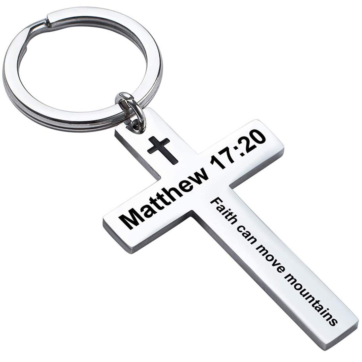 Amazon Cross-Border Cross Keychain Stainless Steel Keychain Pendant Necklace Engraved Christian Commemorative Gift