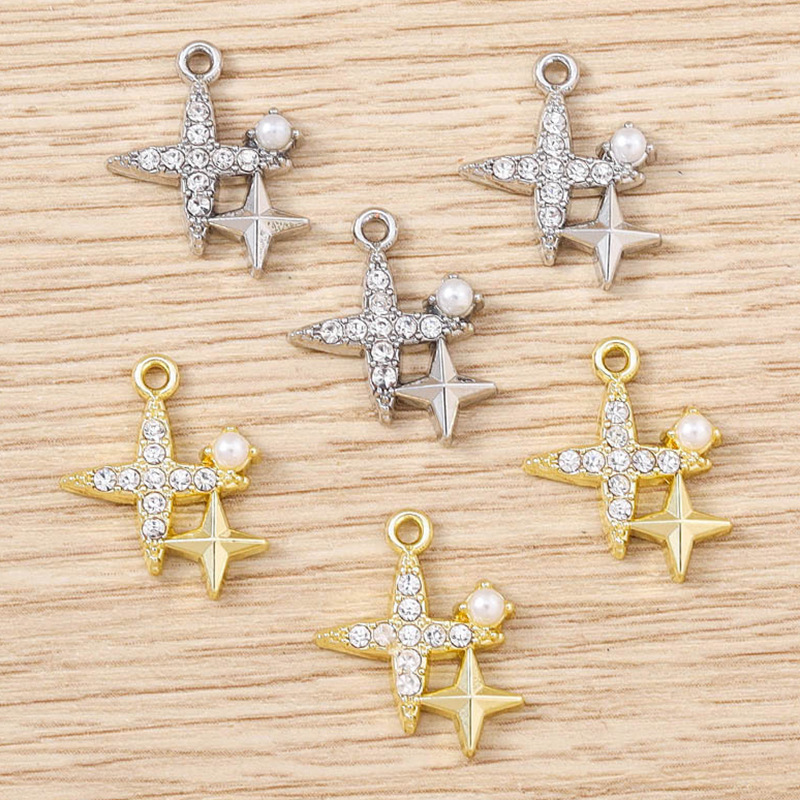 5 Pcs/Pack Exquisite and Simple Four-Pointed Star Cross Jewelry Accessories Christian Bracelet Necklace Keychain Pendant