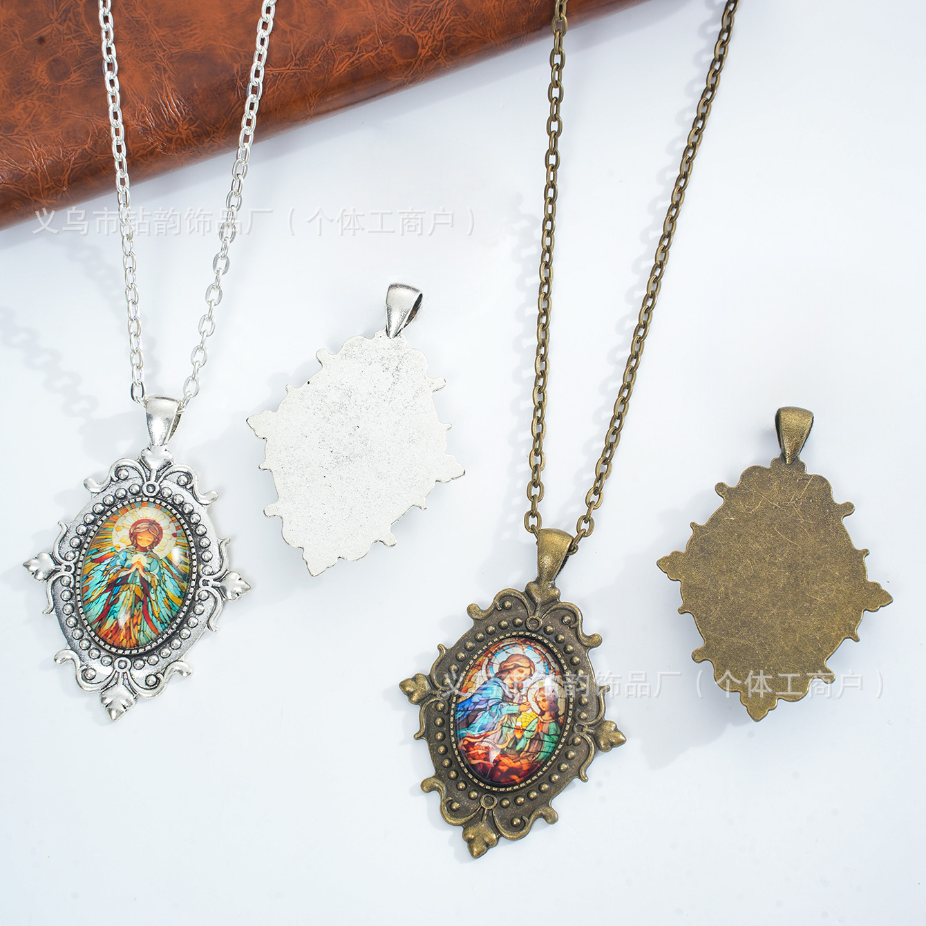 Cross-Border New Product Retro Pendant Holy Christian Maria Necklace Time Gemstone Alloy Base Accessories