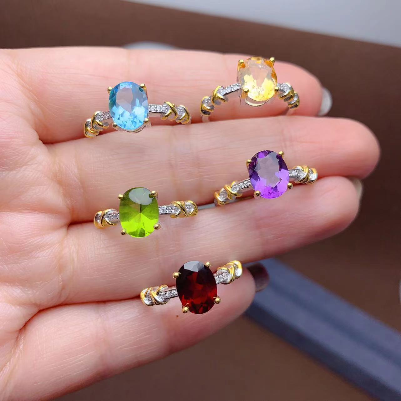 New Ring 925 Silver Inlaid Natural Color Sapphire Blue Topa Crystal Garnet Simple Adjustable for Women