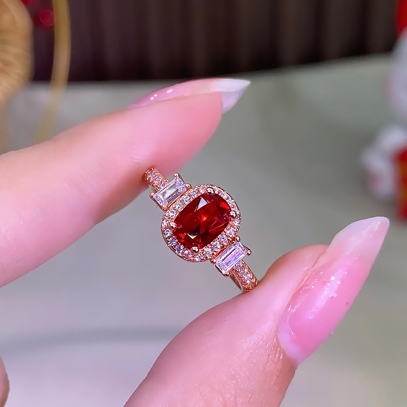 Tiktok Kuaishou new rose gold plated artificial ruby color treasure open ring light luxury temperament full inlaid ring