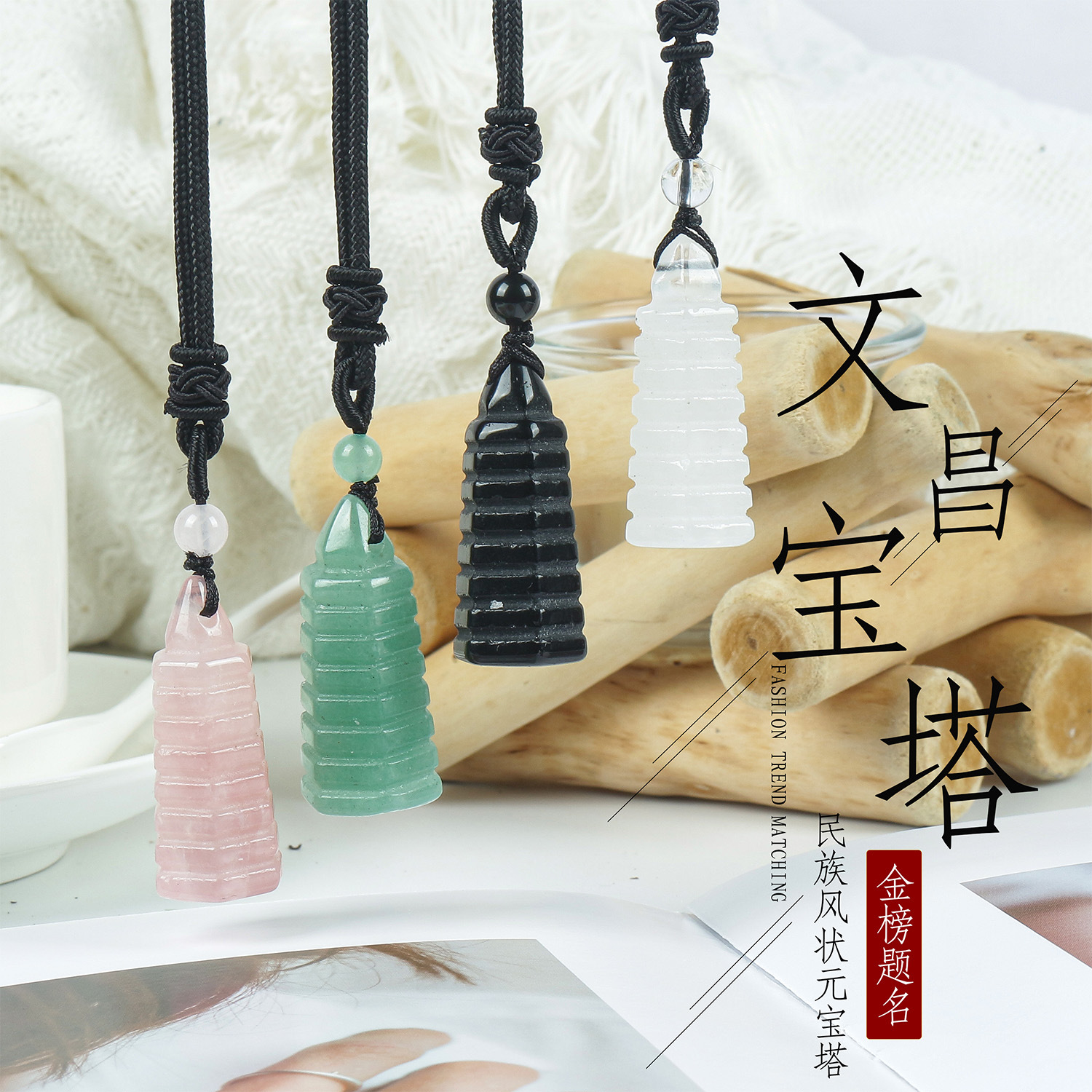 Hot-Selling Natural Crystal 9-Layer Wenchang Tower Pendant for Tourist Attractions, Ethnic Style Gold-Plated Wenchang Tower Necklace for Academic Success