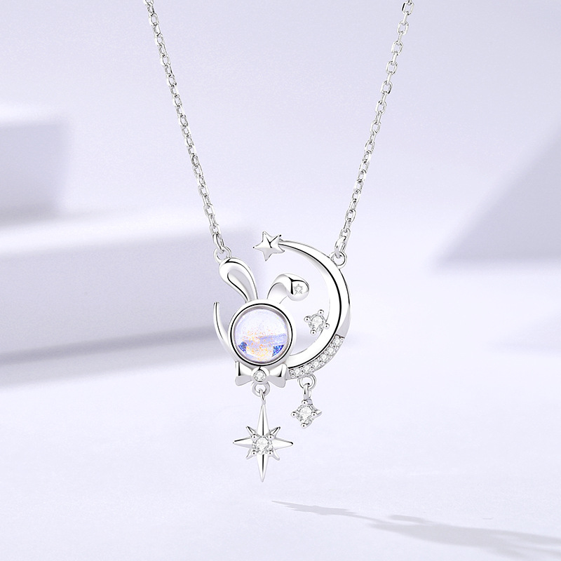 New birth year cute rabbit planet glazed stone necklace s925 sterling silver original design four Awn star clavicle chain female