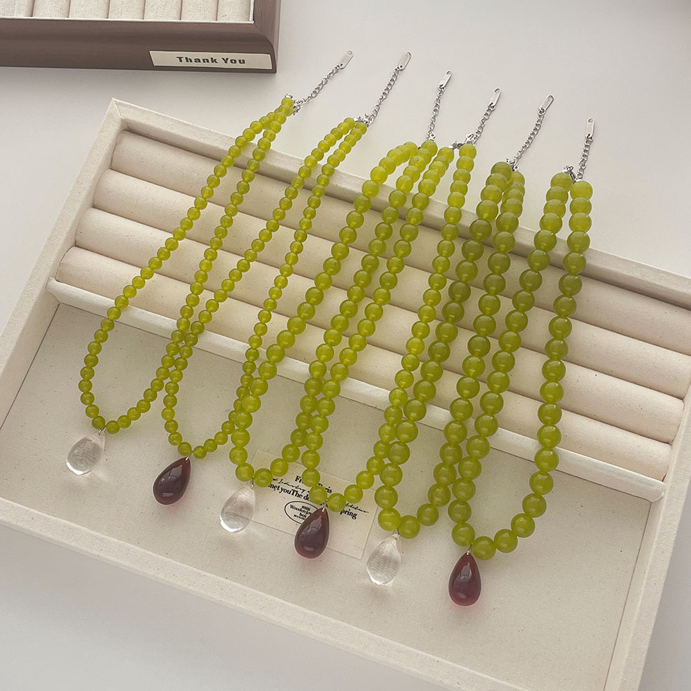 French Olive Green Agate Green Necklace Niche Summer Handmade Beaded Water Drops Natural Stone Clavicle Chain Accessories