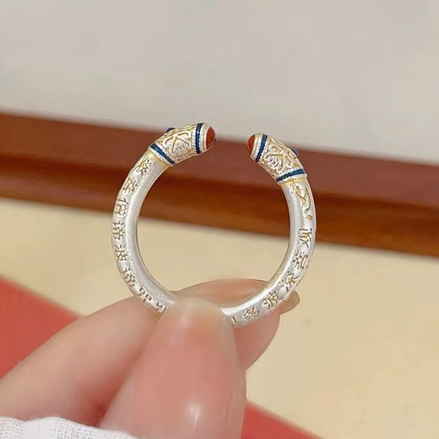 New Chinese Style Retro National Tide Gold Tracing Craft Heart sutra Gold Hoop Stick Ring Black Myth Wukong National Style Temperament Literature and Art