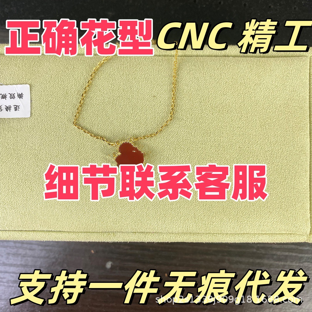 V Gold Precision Version Four-Leaf Clover Necklace Single Flower Red Chalcedony Black Agate Necklace Cnc Process High Version Live Supply