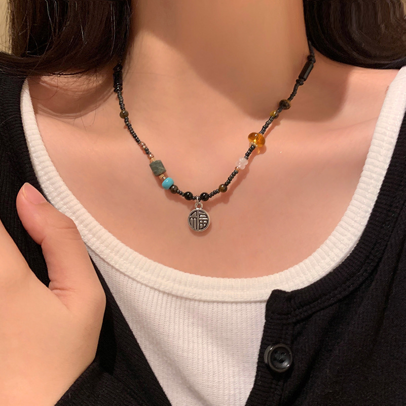 Natural stone "little Xingshi" handmade beaded Lucky Brand clavicle chain niche national style light luxury necklace